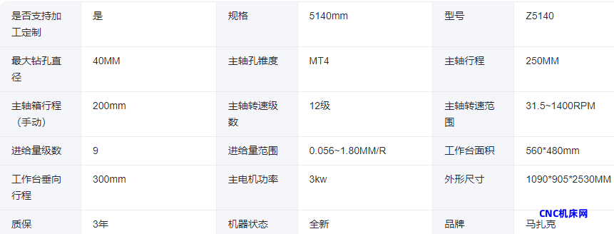 马扎克Z5140立式钻床 MT4锥度 12级转速 多功能 高精度 上门调试安装