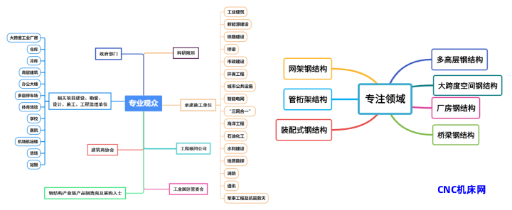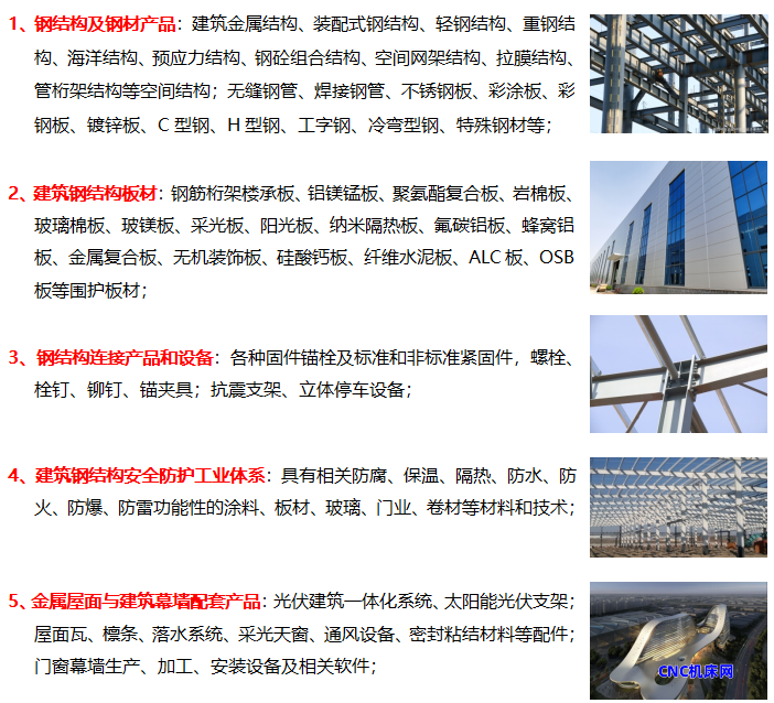 工业建筑、新能源建设、铁路建设、桥梁、市政建设、环保工程、城市公共设施、智能电网、“三网合一”、海洋工程、石油化工、水利建设、地质勘探、消防、通讯、军事工程及抗震救灾的承建施工单位;大跨度工业厂房、仓库、冷库、高层建筑、办公大楼、多层停车场、体育场馆、学校、医院、机场航站楼、货场、站棚等相关项目建设、勘察、设计、施工、工程监理单位;建筑商协会、科研院所、工程顾问公司、工业园区管委会、政府部门;钢结构产业链产品制造商及采购人士。