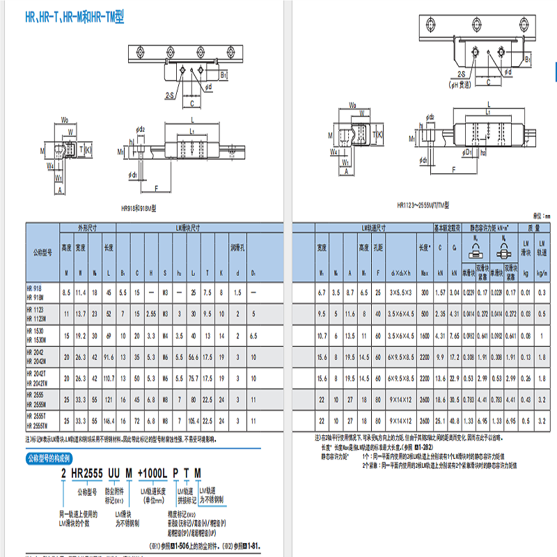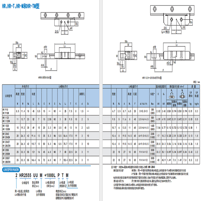 THK单边滑轨 HR2042 HR2042 HR2555