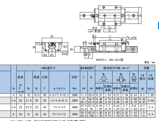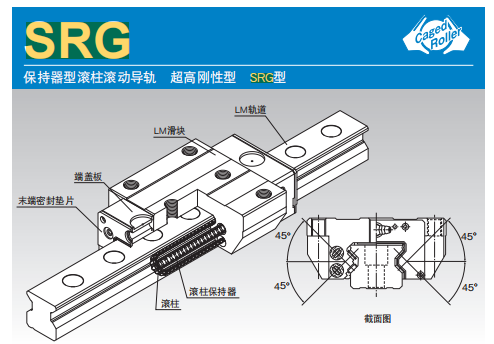 【结构与特长】SRG型通过采用滚柱保持器,能获得低摩擦的平滑运动,是实现了长期运行而免维护的超高刚性滚柱导轨。