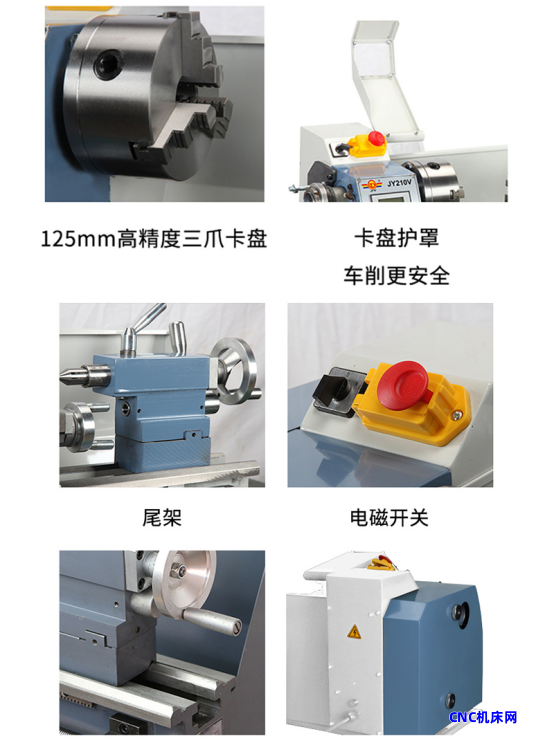 带气缸尾座架子仪表车床家用带架子外圆内圆平头迷你主轴车床