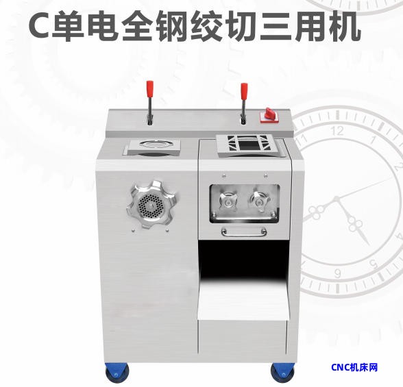 工作原理:通过电机驱动内部的螺旋推进器,将肉块推送到刀片处进行切割,然后通过孔板(筛网)挤出肉馅。