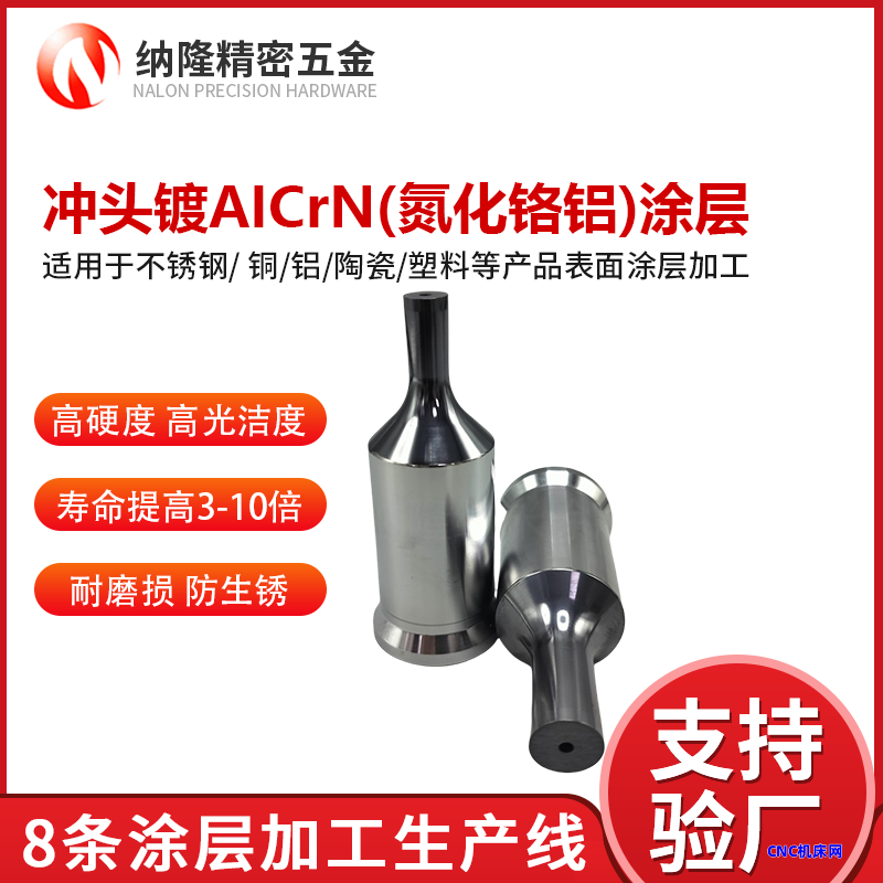 耐磨自润滑DLC薄膜 高硬度不锈钢冲头镀AICrN(氮化铬铝)涂层 纳隆