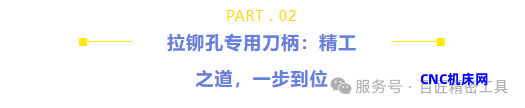 拉铆孔专用刀柄采用镗削工艺,能像镗圆孔一样镗出内六角、方孔,切削力小、强度高,在提升效率的同时保证加工精度和稳定性。
