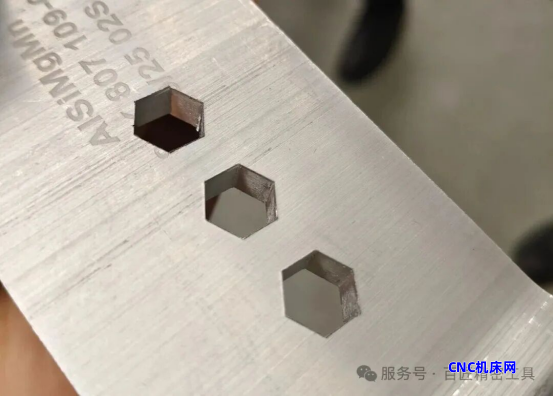 对硬质或厚板材加工时,易出现六角形状不规整、R角达不到要求等情况,影响拉铆螺母安装质量。