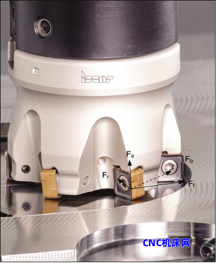 在铣削中:径向力Fr与车削类似,将铣刀推离工件。Fr和Ft的合力Fb称为"弯曲力",会使铣刀产生弯曲变形。该合力在进给运动轴线上的投影形成由机床进给驱动引起的反作用力。轴向力Fa沿铣刀轴线作用,对主轴单元轴承产生载荷。