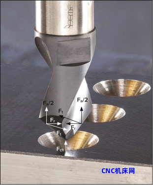 在钻削中:轴向力Fa对应钻头的主切削刃(刃口)。该力沿钻头轴线压缩钻头,并与作用于钻头横刃的力Fch共同决定进给驱动的功率消耗。