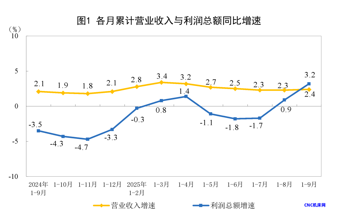 1—9月份,全国规模以上工业企业实现利润总额53732.0亿元,同比增长3.2%(按可比口径计算,详见附注二)。
