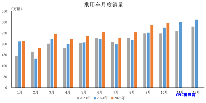 2025年1-10月,乘用车产销分别完成2423.7万辆和2420.9万辆,同比分别增长13.5%和12.9%。