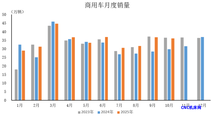 2025年1-10月,商用车产销分别完成345.6万辆和347.9万辆,同比分别增长10.9%和9%。