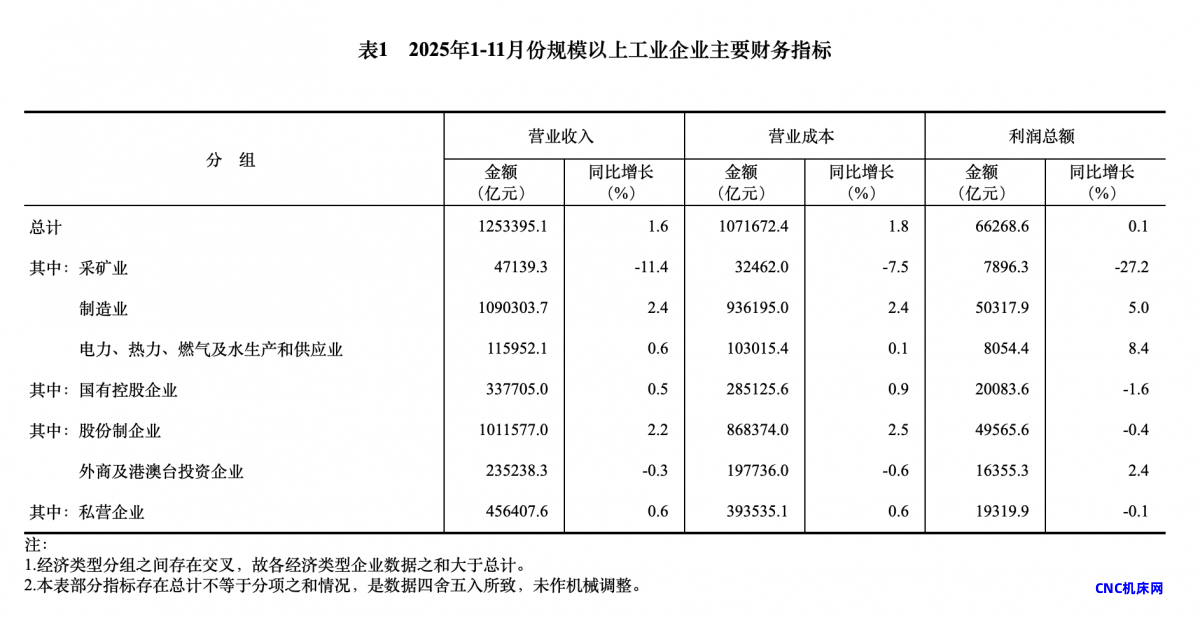 1—11月份,全国规模以上工业企业实现利润总额66268.6亿元,同比增长0.1%(按可比口径计算,详见附注二)。