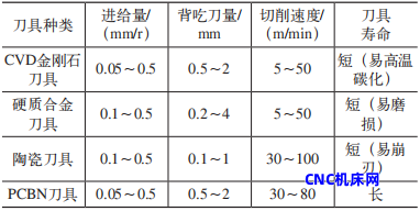 表3 钨合金零件切削刀具及工艺参数比较