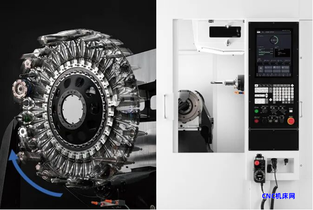 该机在30号主轴规格下,实现了 直径680毫米×高度400毫米 的系列最大治具空间,主要面向电动汽车用 e-Axle(电驱动单元)等大型、复杂零部件的多面加工需求。