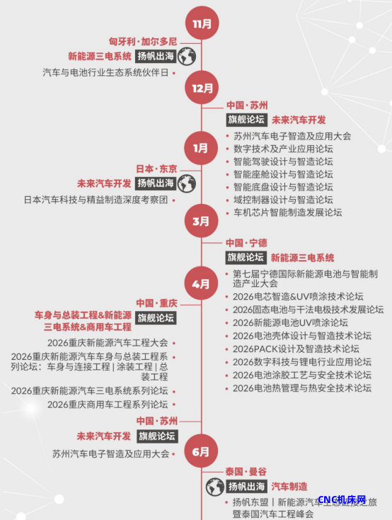 2026年,我们将推出多种活动形式,覆盖旗舰论坛、闭门峰会、主题系列会议、Workshop科技工坊、Techshow高新科技发布、圆桌对话、科技导览、扬帆出海、先锋奖项、走进智造、商务酒会等全维度活动,为您呈现一场多元化的创新生态体验。从聚焦冲焊涂总工艺的新能源工程大会、探索前瞻开发与测试技术的专业论坛,到深度研讨前沿科技的TechShow & Workshop;从沉浸式国内外智造产线工厂考察,到促进深度链接的圆桌会议、交流晚宴与精准配对,通过旗舰峰会、主题会议、Workshop科技工坊、出海及商务考察等全维度活动打造集技术洞察、知识共享与商业合作为一体的高端平台。
