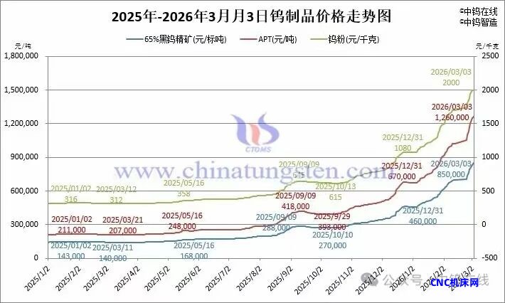 · 市场行情:2026年2月,国内钨市场更是呈现 “日涨1万~6 万元” 的极端态势,月涨幅达30%,年内累计涨幅近80%。