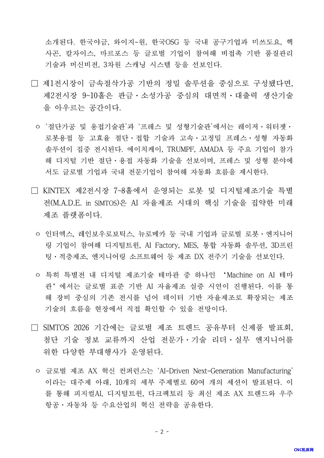 SIMTOS 2026(首尔国际制造技术展2026)是韩国最大的制造技术展,将于2026年4月13日至17日在韩国高阳KINTEX展厅1号和2号举行,为期五天。