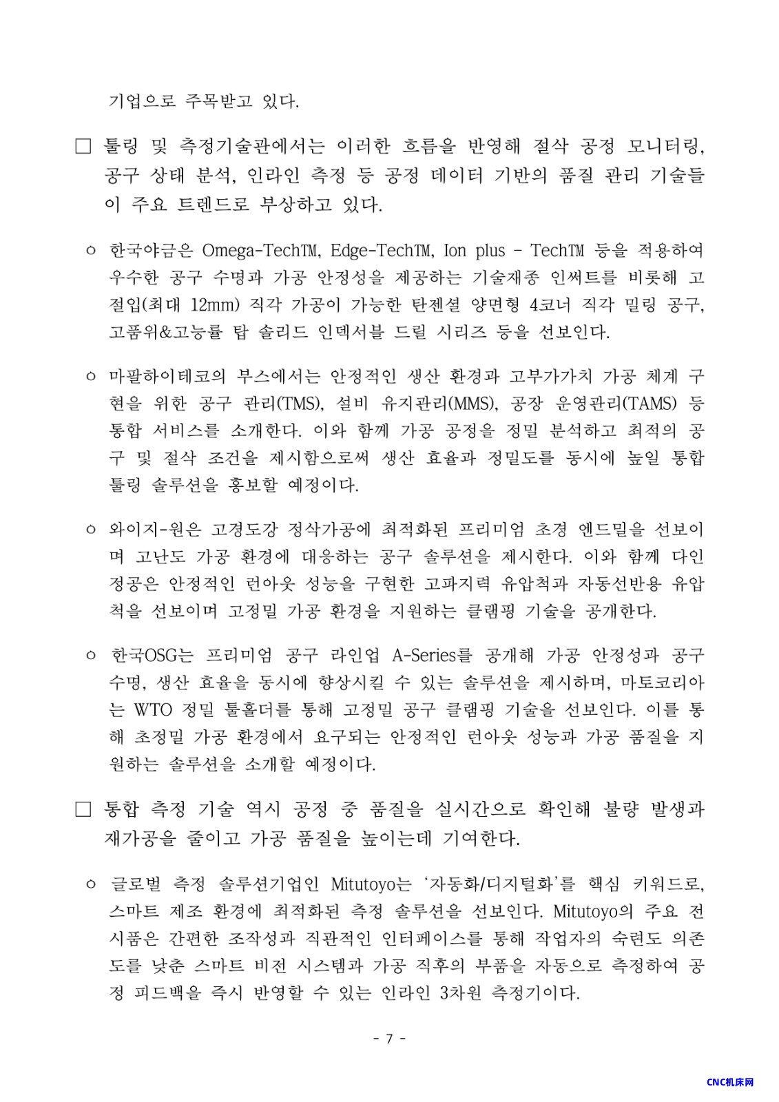 展馆配备立铣刀、钻头、塔头、嵌件、多晶金刚石(PCD)·立方氮化硼(CBN)工具、其他刀具夹持器和工具寿命监测系统,以及先进的检测和测量技术,如三维坐标测量机与仪器(CMM)和机器视觉系统。这些解决方案提升了生产力并提升了质量表现。