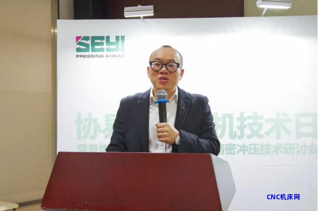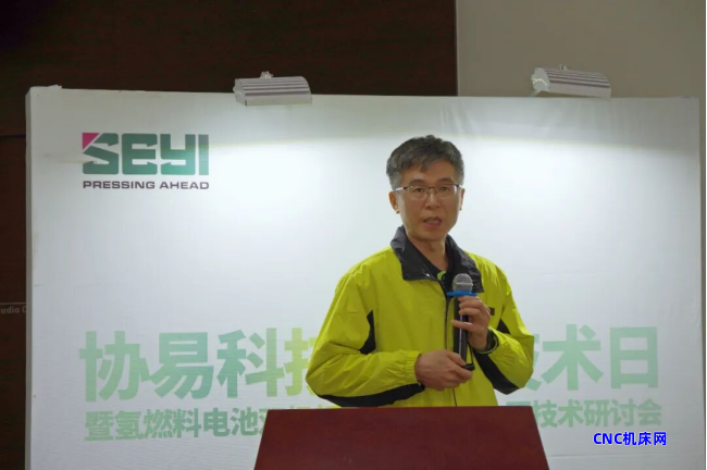 林明旸协理详细介绍SDK1 系列伺服冲床专为高精度、高刚性板锻成形设计,是氢燃料电池金属双极板精密冲压的理想装备。