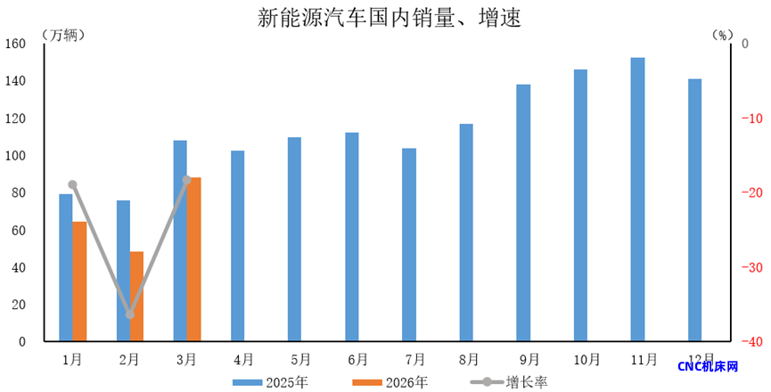 2026年3月,新能源汽车国内销量88.2万辆,环比增长82.4%,同比下降18.3%。