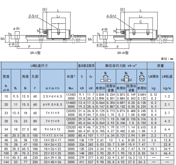 THK低断面高度高负荷导轨滑块SR15V2UUC1+110L