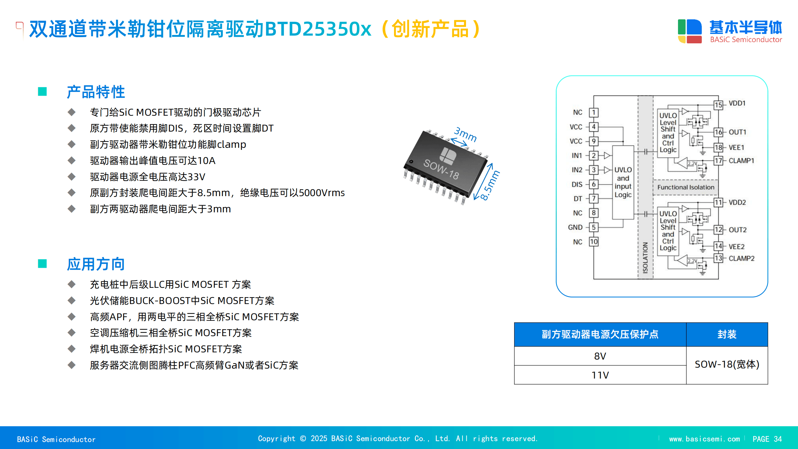 下表1汇总了基本半导体34mm SiC MOSFET模块产品线中各主要型号的核心技术参数。