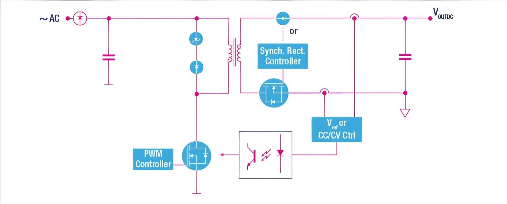 在中低功率(通常小于300W)的高压隔离应用中,隔离型反激(Flyback)转换器因其结构简单、元件数量少、以及天然提供输入/输出隔离的优点,成为工业辅助电源和开关电源的首选拓扑 。 为了进一步提升系统的能效并降低开关损耗,现代辅助电源设计经常采用准谐振(Quasi-Resonant, QR)反激控制模式 。QR 模式通过在主开关的漏源电压 ( VDS) 波形的谷底导通,实现准零电压开关(ZVS)。这种谷底开关技术在高频操作下表现尤为优异,能够最大限度地减少开关损耗。
