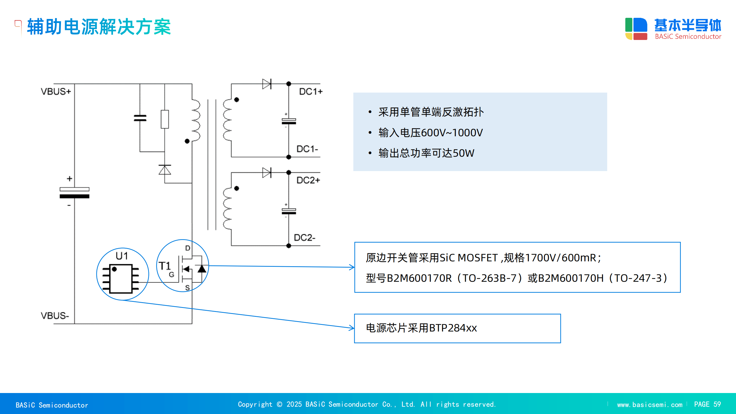 辅助电源的高效运行依赖于高性能的电流模式 PWM 控制器,例如基本半导体(BASiC Semiconductor)的 BTPx84x 系列,该系列专为反激电源和 BOOST 变换器设计 。