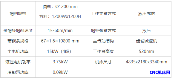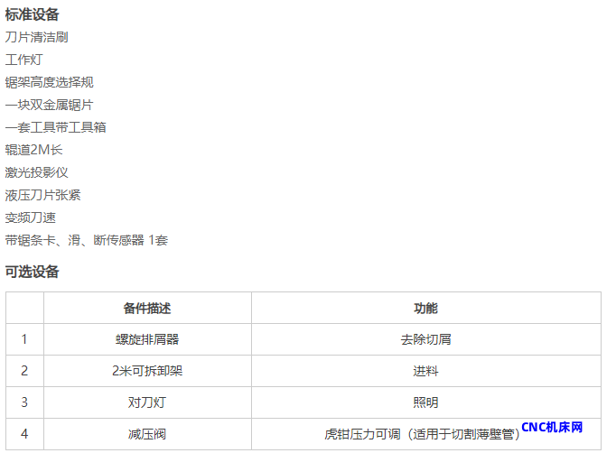 锯带液压张紧,切割速度变频控制,可选配排屑装置。