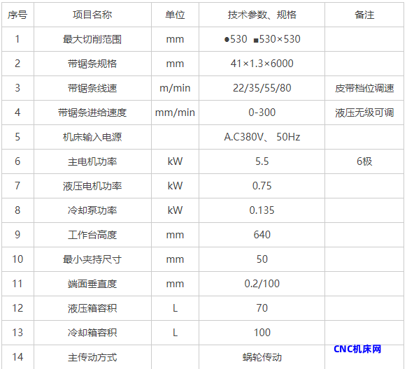 机床通过机械、电气、液压的配合,具有自动夹紧、自动进刀、切割完毕锯架自动快速退刀的功能。
