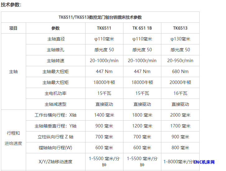 TK65系列龙门铣镗床为T型动柱式,侧装式主轴箱结构:床身为整体T字型式。工作台沿前床身横向移动为X轴,立柱固定在滑座上,滑座沿后床身导轨纵向移动为Z轴,主轴箱沿立柱导轨垂直方向移动为Y轴,镗轴轴向移动为W轴。