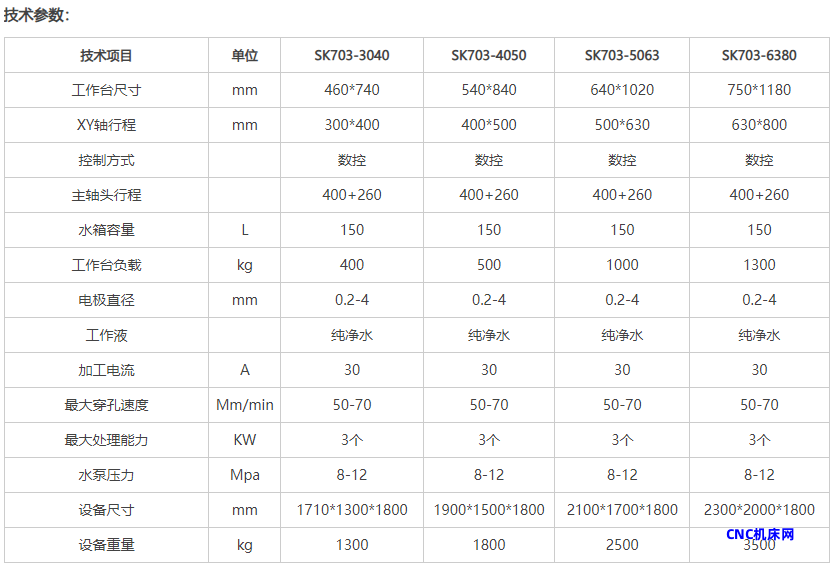 本机是一种高速电火花小孔加工设备,以铜管为电极,由导轨引导,电极与工件之间采用高效脉冲电源。工件与工件之间产生脉冲高频放电,工件受控腐蚀。加工时,高压水质工作液从电极内孔喷出,对加工区域进行强制切屑冷却,保证加工的顺利进行。加工孔径范围一般为φ0.2-4mm,1mm左右孔径深径比可达300:1以上,加工速度一般为1-40mm/min。数控电火花冲床的硬度和韧性极限是一套高级功能,如Z轴定深精密加工、X轴和Y轴伺服检测等高级功能。使用方便,操作简单,稳定可靠,适用范围广。产品。可加工各种金属和超硬导体的切通孔、过滤孔、气孔、群孔、喷嘴孔等传统加工方法难以加工的又深又精密的小孔。
