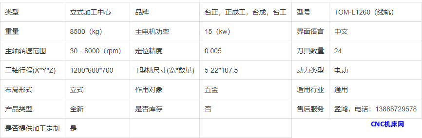 标配主轴8000rpm。(TOM-L1270可选配BT40-150主轴,订货时须注明)