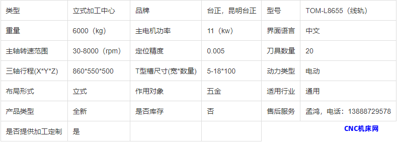 3) 进口滚珠线性导轨(TOM-L1062B为三轴滚柱线性导轨(台湾上银、台湾银泰)