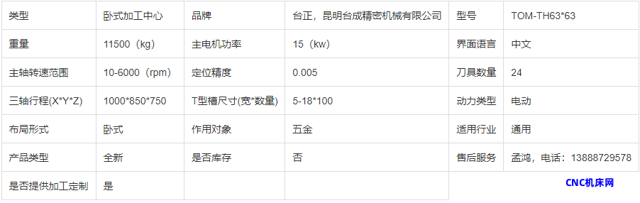 备注:1.TOM—W1075可选配安装630×630或更小尺寸的旋转工作台;