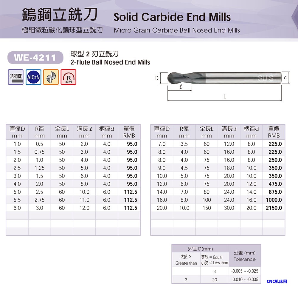 本网页所展示的有关【钨钢立铣刀—极细微粒碳化钨球型立铣刀】的信息/图片/参数等由的会员【】提供,由CNC机床网会员【】自行对信息/图片/参数等的真实性、准确性和合法性负责,本平台(本网站)仅提供展示服务,请谨慎交易,因交易而产生的法律关系及法律纠纷由您自行协商解决,本平台(本网站)对此不承担任何责任。您在本网页可以浏览【钨钢立铣刀—极细微粒碳化钨球型立铣刀】有关的信息/图片/价格等及提供 【钨钢立铣刀—极细微粒碳化钨球型立铣刀】的商家公司简介、联系方式等信息。