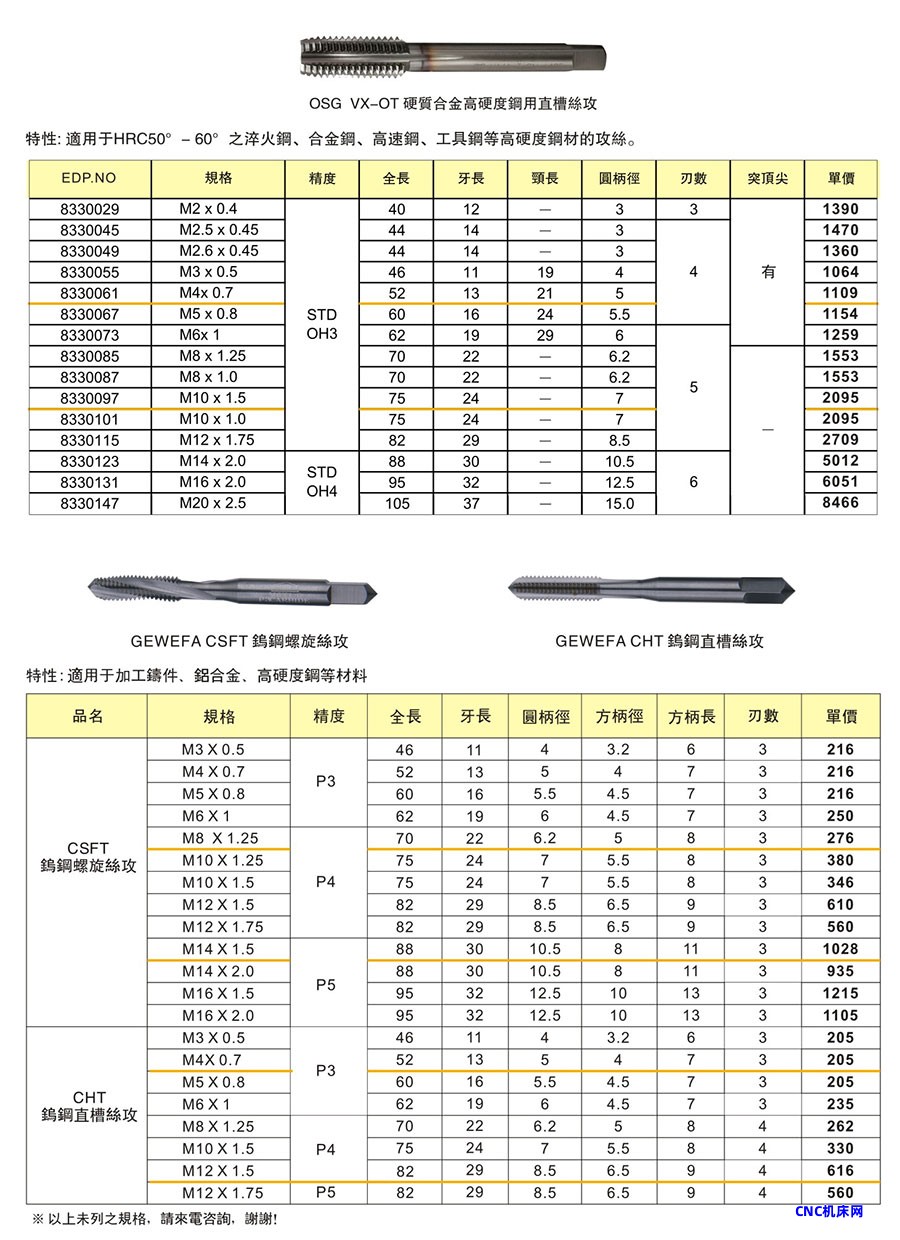 本网页所展示的有关【钨钢丝攻系列】的信息/图片/参数等由的会员【】提供,由CNC机床网会员【】自行对信息/图片/参数等的真实性、准确性和合法性负责,本平台(本网站)仅提供展示服务,请谨慎交易,因交易而产生的法律关系及法律纠纷由您自行协商解决,本平台(本网站)对此不承担任何责任。您在本网页可以浏览【钨钢丝攻系列】有关的信息/图片/价格等及提供 【钨钢丝攻系列】的商家公司简介、联系方式等信息。