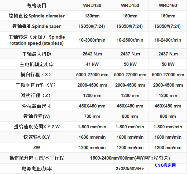 WRD 130/150 型镗床采用现代结构技术,性能参数高。机床可配备多种技术装置,从而大大提高机床的技术能力。