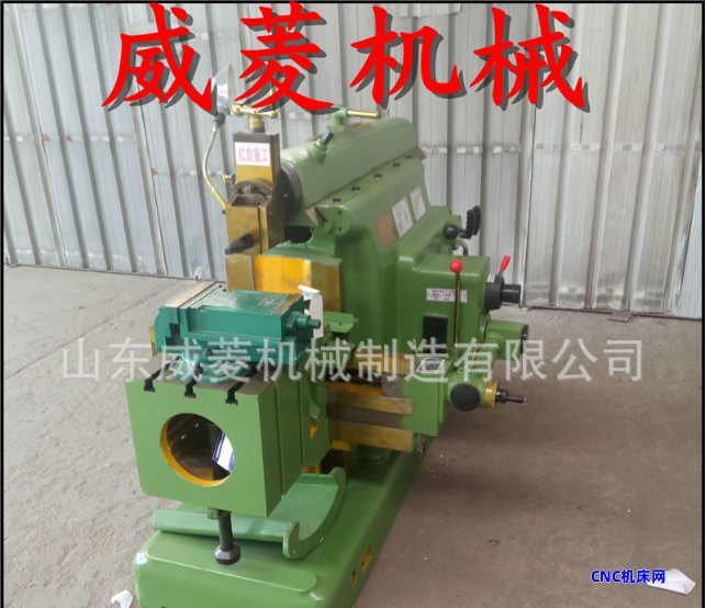 一种刨床,利用住复运动的刀具切割已固定在机床工作平台上的工件〔一般用来加工较小工件)。机床的刀架1犬似牛头,故名。