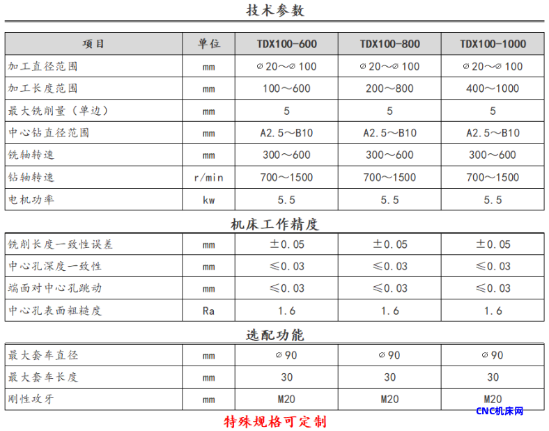 标准机功能:铣端面、钻中心孔
