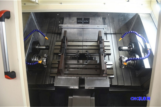 3.采用铣,钻分离的双主轴设计,结构合理,便于对刀及调整,动力头采用齿轮传动,扭力大,切削力强。4.四轴伺服数控系统,定位准确,位置手轮操作简单,调整方便。