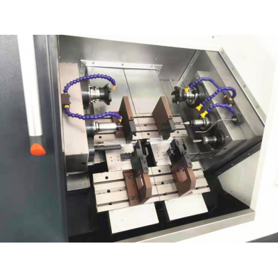 本系列铣端面打中心孔机床适用于桁架机械手上下料采用的是整体45度结构,这样可以尽可能的使机械手装卸更大直径的工件,同时保持良好的排屑性能,同时该铣端面打中心孔机床刚性强,精度高、效率高。可配自动化机械手也可人工上下料。