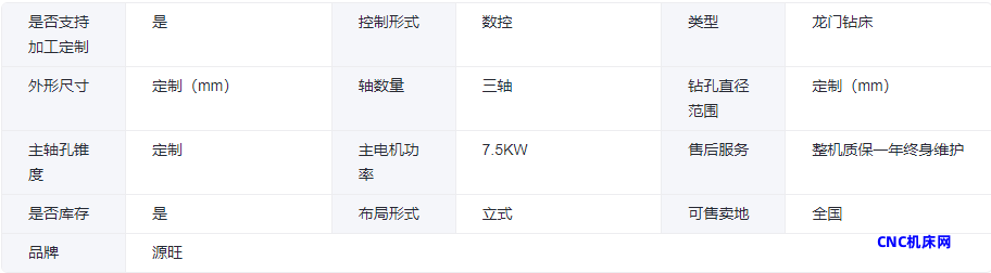 本网页所展示的有关【源旺厂家高进料数控龙门钻床 模具加工专用钻铣床 一体铸造定梁结构】的信息/图片/参数等由的会员【】提供,由CNC机床网会员【】自行对信息/图片/参数等的真实性、准确性和合法性负责,本平台(本网站)仅提供展示服务,请谨慎交易,因交易而产生的法律关系及法律纠纷由您自行协商解决,本平台(本网站)对此不承担任何责任。您在本网页可以浏览【源旺厂家高进料数控龙门钻床 模具加工专用钻铣床 一体铸造定梁结构】有关的信息/图片/价格等及提供 【源旺厂家高进料数控龙门钻床 模具加工专用钻铣床 一体铸造定梁结构】的商家公司简介、联系方式等信息。