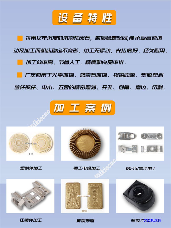 应用范围:广泛应用于亚克力、石墨、玻璃、塑胶、塑料、复合材料玻纤碳纤、五金金属、pc、pvc、pet视窗镜片等材质。雕铣、精密雕刻、精密切割、磨边、倒角、倒边、钻孔、开槽、铣牙等精密加工。