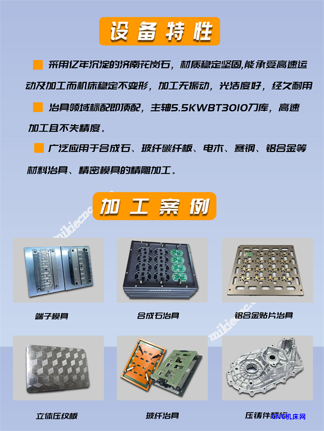 | 产品名称:1080高速精雕雕铣机 产品型号:1080ZL 应用范围:采用亿年沉淀的济南花岗石,材质稳定坚固,能承受高速运动加工,机床稳定不变形、加工无震动、光洁度好、经久耐用。★治具领域标配即顶配,主轴5.5KWBT3010刀库,高速加工不失精度。★ 广泛应用于合成石、玻纤板、碳纤维、电木、赛钢、铝合金等材料治具、精密模具的精雕加工。 |
