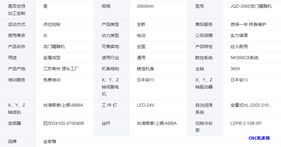 本网页所展示的有关【cnc雕铣机 金属 模具 治具 3060龙门精雕机 奇雕数控】的信息/图片/参数等由的会员【】提供,由CNC机床网会员【】自行对信息/图片/参数等的真实性、准确性和合法性负责,本平台(本网站)仅提供展示服务,请谨慎交易,因交易而产生的法律关系及法律纠纷由您自行协商解决,本平台(本网站)对此不承担任何责任。您在本网页可以浏览【cnc雕铣机 金属 模具 治具 3060龙门精雕机 奇雕数控】有关的信息/图片/价格等及提供 【cnc雕铣机 金属 模具 治具 3060龙门精雕机 奇雕数控】的商家公司简介、联系方式等信息。