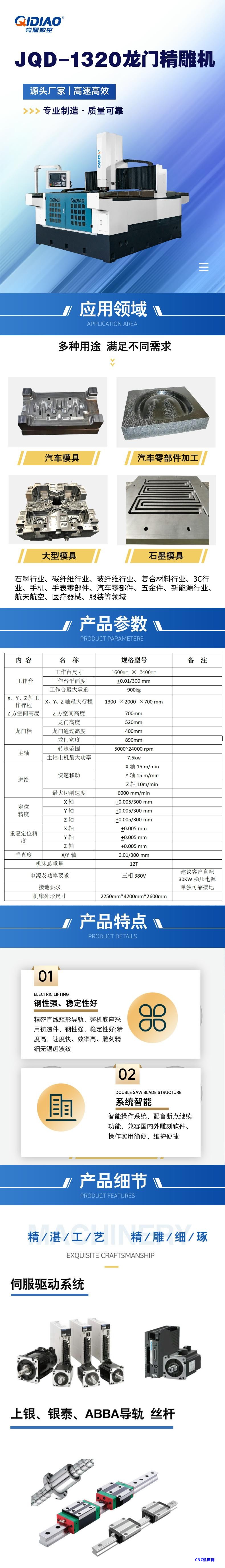 本网页所展示的有关【JQD-1320龙门精雕机】的信息/图片/参数等由的会员【】提供,由CNC机床网会员【】自行对信息/图片/参数等的真实性、准确性和合法性负责,本平台(本网站)仅提供展示服务,请谨慎交易,因交易而产生的法律关系及法律纠纷由您自行协商解决,本平台(本网站)对此不承担任何责任。您在本网页可以浏览【JQD-1320龙门精雕机】有关的信息/图片/价格等及提供 【JQD-1320龙门精雕机】的商家公司简介、联系方式等信息。