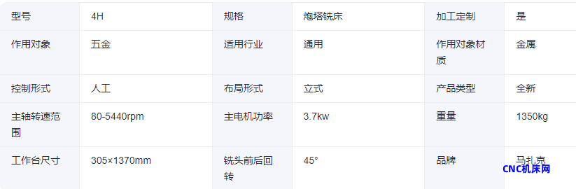 本网页所展示的有关【马扎克数控机床3H 4H 5H炮塔铣床 配三轴数显尺 立卧两用】的信息/图片/参数等由的会员【】提供,由CNC机床网会员【】自行对信息/图片/参数等的真实性、准确性和合法性负责,本平台(本网站)仅提供展示服务,请谨慎交易,因交易而产生的法律关系及法律纠纷由您自行协商解决,本平台(本网站)对此不承担任何责任。您在本网页可以浏览【马扎克数控机床3H 4H 5H炮塔铣床 配三轴数显尺 立卧两用】有关的信息/图片/价格等及提供 【马扎克数控机床3H 4H 5H炮塔铣床 配三轴数显尺 立卧两用】的商家公司简介、联系方式等信息。