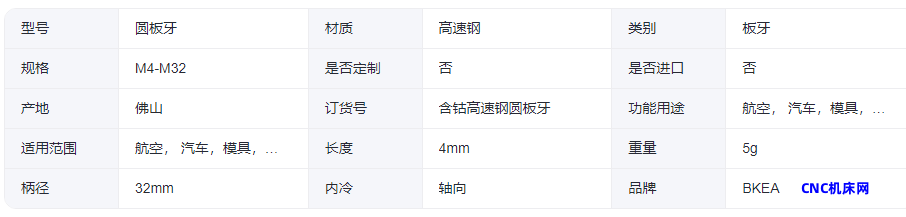 本网页所展示的有关【机械制造汽车维修管道加工修正外螺纹加工工具含钴高速钢圆板牙】的信息/图片/参数等由的会员【】提供,由CNC机床网会员【】自行对信息/图片/参数等的真实性、准确性和合法性负责,本平台(本网站)仅提供展示服务,请谨慎交易,因交易而产生的法律关系及法律纠纷由您自行协商解决,本平台(本网站)对此不承担任何责任。您在本网页可以浏览【机械制造汽车维修管道加工修正外螺纹加工工具含钴高速钢圆板牙】有关的信息/图片/价格等及提供 【机械制造汽车维修管道加工修正外螺纹加工工具含钴高速钢圆板牙】的商家公司简介、联系方式等信息。