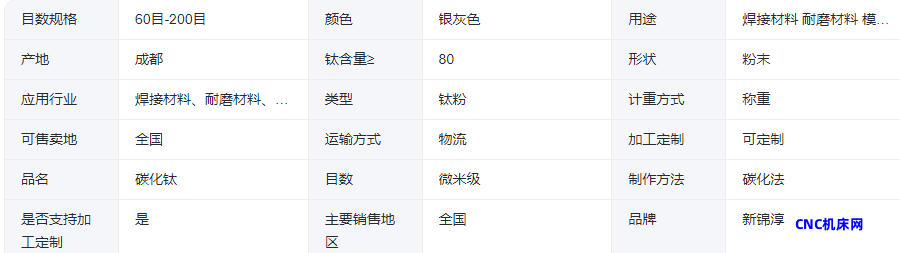 本网页所展示的有关【球形陶瓷碳化钛粉末 高纯 超细 切削刀具材料 厂家直发】的信息/图片/参数等由的会员【】提供,由CNC机床网会员【】自行对信息/图片/参数等的真实性、准确性和合法性负责,本平台(本网站)仅提供展示服务,请谨慎交易,因交易而产生的法律关系及法律纠纷由您自行协商解决,本平台(本网站)对此不承担任何责任。您在本网页可以浏览【球形陶瓷碳化钛粉末 高纯 超细 切削刀具材料 厂家直发】有关的信息/图片/价格等及提供 【球形陶瓷碳化钛粉末 高纯 超细 切削刀具材料 厂家直发】的商家公司简介、联系方式等信息。