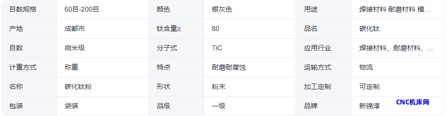 本网页所展示的有关【新锦淳 高纯 超细 球形陶瓷碳化钛粉末 切削刀具材料 工厂批发】的信息/图片/参数等由的会员【】提供,由CNC机床网会员【】自行对信息/图片/参数等的真实性、准确性和合法性负责,本平台(本网站)仅提供展示服务,请谨慎交易,因交易而产生的法律关系及法律纠纷由您自行协商解决,本平台(本网站)对此不承担任何责任。您在本网页可以浏览【新锦淳 高纯 超细 球形陶瓷碳化钛粉末 切削刀具材料 工厂批发】有关的信息/图片/价格等及提供 【新锦淳 高纯 超细 球形陶瓷碳化钛粉末 切削刀具材料 工厂批发】的商家公司简介、联系方式等信息。